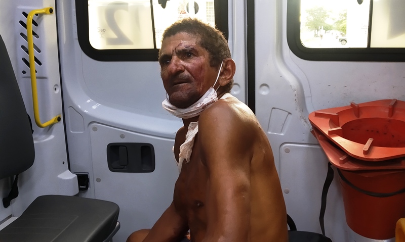 Ao chegarem ao local, os policiais se depararam com Cícero Faustino da Silva, de 57 anos, mais conhecido como Mudinho do Jatobá. Ele havia sofrido uma facada nas costas e estava sangrando bastante na altura da escápula. Bastante agitado, a vítima chamou a atenção dos cidadãos da localidade onde é muito conhecido. A vítima e os populares não souberam informar quem teria praticado a agressão.