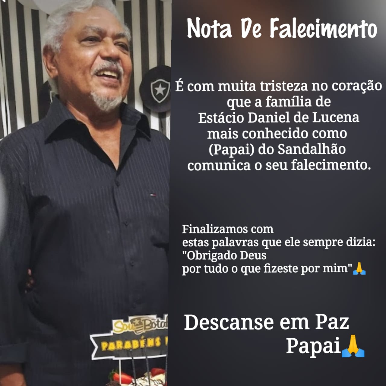 Aqui quero deixar a minha homenagem ao velho amigo Nena de Chico Daniel. Nascido em 1945, era mais velho do que eu, e a terrível COVID o levou. Cumpriu sua missão, mas deixou muitos amigos pesarosos. Descanse em paz, amigo. Para os parentes e amigos, minhas condolências. Para nós uma lembrança a menos, uma saudade a mais. Adeus, Nego Nena!