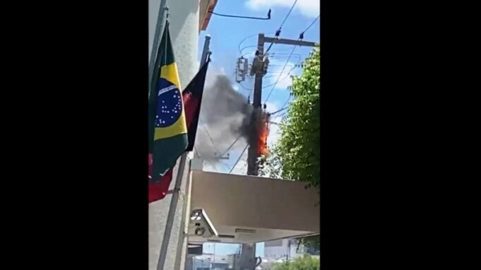 Na manhã desta sexta-feira, dia 03, por volta das 11h00, na Rua Solon de Lucena, centro, internautas registraram o início do incêndio em um poste de energia elétrica nas proximidades do Banco do Nordeste, em Patos.