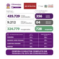 Paraíba registra 356 casos de Covid-19 em 24h.