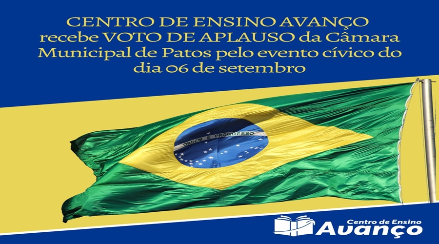 O Centro de Ensino Avanço, em Patos, recebeu Voto de Aplauso da Câmara Municipal de Patos pelo grande evento cívico em homenagem ao dia da independência.
