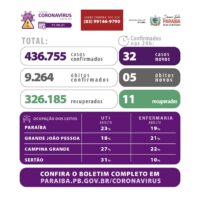 Os dados epidemiológicos com informações sobre todos os municípios e ocupação de leitos estão disponíveis em: www.paraiba.pb.gov.br/coronavirus.