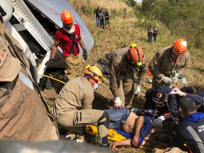 A vítima ficou presa nas ferragens do veículo, e, após quase três horas de trabalho da Equipe de Bombeiros, o homem foi resgatado ainda com vida e levado ao hospital.