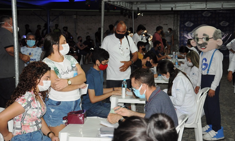 Centenas de jovens de 16 e 17 anos lotaram o estacionamento do Guedes Shopping na noite desta quinta-feira, dia 23, para receber a primeira dose da vacina da Pfizer contra a Covid-19, em Patos. A vacinação teve início às 18h00 e se estendeu até às 22h00.