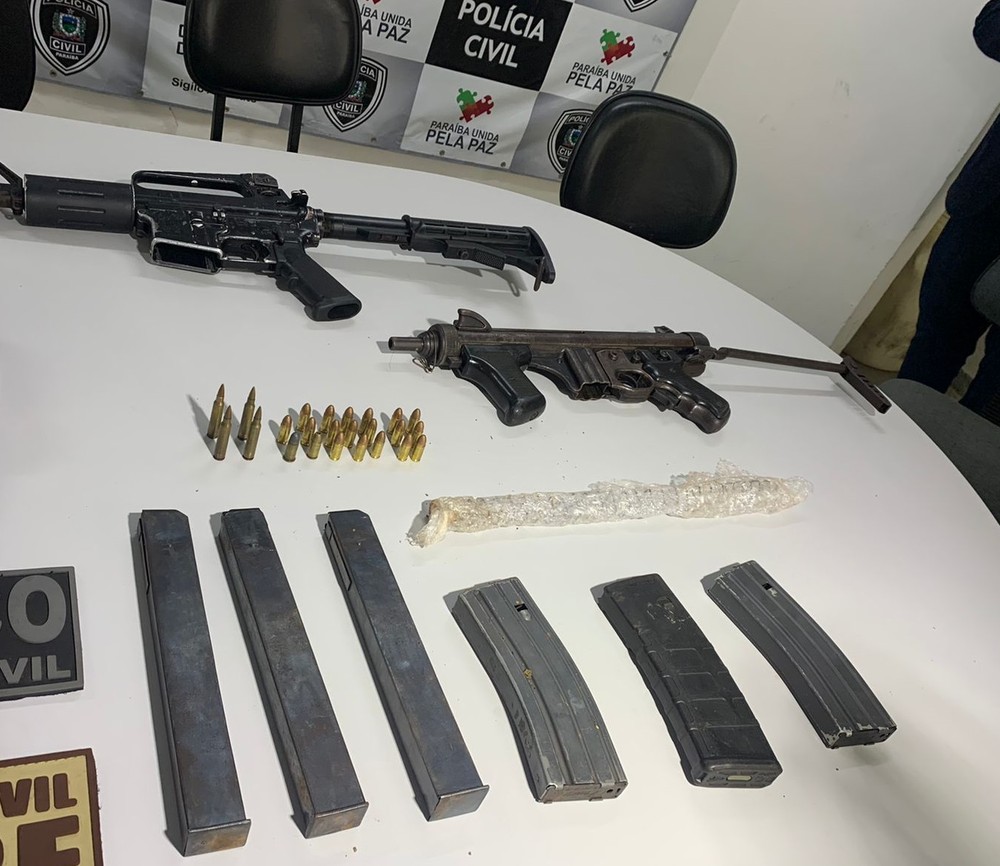 Com os homens, foram apreendidos um fuzil, uma submetralhadora, materiais de escavação e vários explosivos. O material apreendido estava enterrado na zona rural da cidade de Livramento, Cariri da Paraíba.