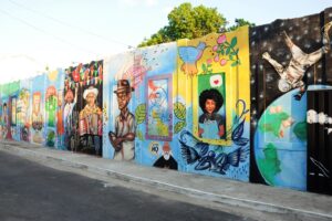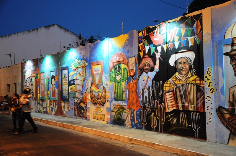 Foi inaugurado na tarde deste sábado, dia 02, o mural artístico urbano da Fundação Ernani Sátyro (FUNES). O espaço tem 26 metros está localizado na Rua Tiradentes, centro de Patos, e teve a participação direta dos artistas plásticos Alex Souto, Alano Pereira, Aurélio Filho, Roberto Nascimento, Breno Barbosa e Frankleyson Brasileiro.