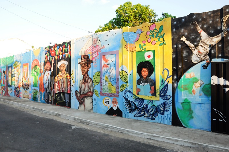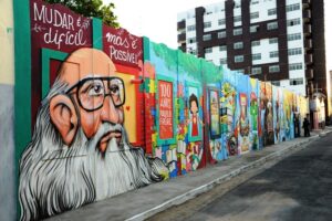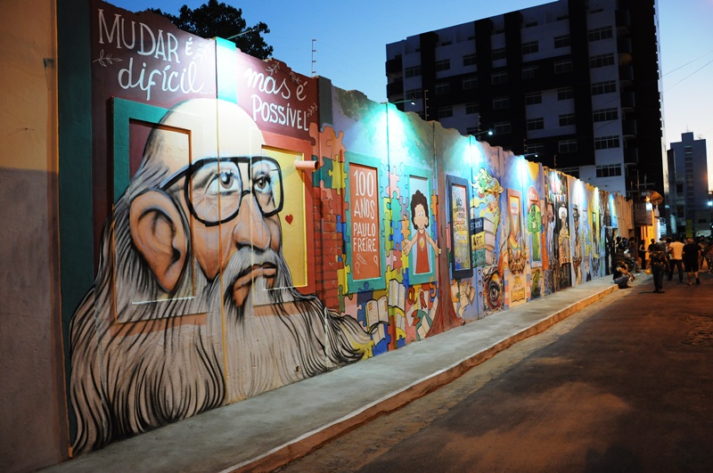 O mural começou a ser preparado no dia 19 de setembro de 2021 em homenagem ao centenário de nascimento do educador Paulo Freire. A FUNES já havia dado início a um curso remoto de Introdução ao pensamento Freireano que contou com mais de 150 participantes. O Programa FUNES CULTURAL também abordou os pontos principais da teoria do educador. A intervenção urbana tem como tema: Educação e Cultura Popular.