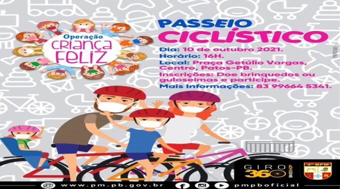 O passeio ciclístico se dará em parceria com a Giro 360 bikeshop, e ocorrerá nas principais ruas da cidade de Patos, no dia 10 de outubro, próximo domingo, com concentração as 16h na praça Getúlio Vargas, Centro.