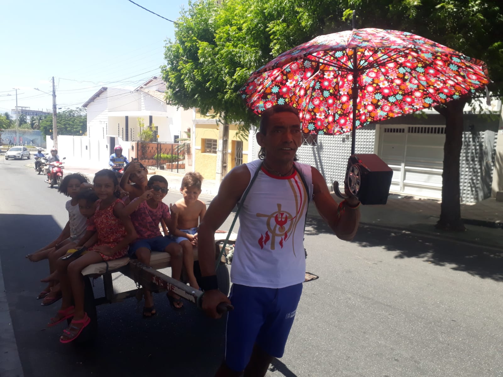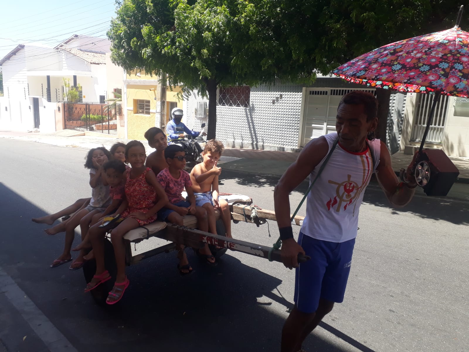 O popular Luciano Nunes da Silva, mais conhecido como “Burra”, residente na Rua da Baixa, no bairro Santo Antônio, em Patos, como faz todo ano, disponibilizou sua carroça para levar as crianças para o centro da cidade, fazendo a festa da garotada neste Dia das Crianças.