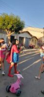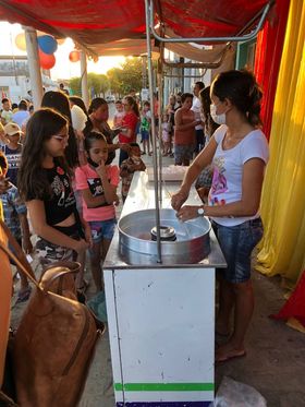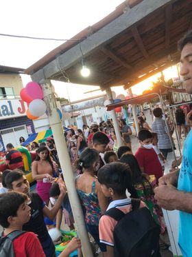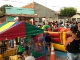 A ação foi realizada durante um evento voltado a criançada da comunidade e contou com barraca de algodão doce, pipoca e cachorro quente, pula-pula e cama elástica.
