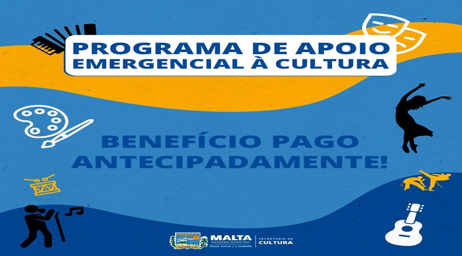 A Prefeitura de Malta na Região Metropolitana de Patos, antecipou nesta sexta-feira (22), o pagamento do apoio emergencial aos artistas e trabalhadores da cultura. Ao todo, foram disponibilizados R$ 900,00, pagos em três parcelas de R$ 300,00, beneficiando os artistas culturais que não puderam realizar suas atividades em razão da pandemia.