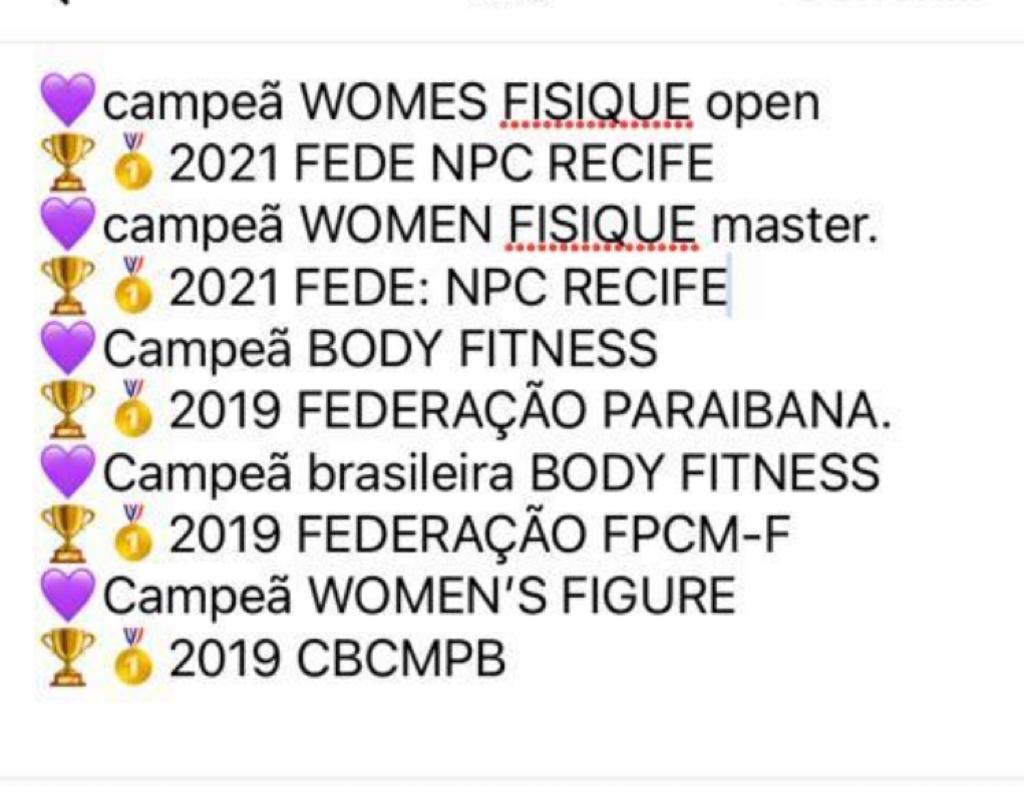 “Tive como missão e mérito voltar a subir aos palcos novamente…Foi uma grande honra poder participar do MUSCLER CONTEST, um evento de grande nível, no qual não imaginei partilhar um dia! E ainda me tornar CAMPEÃ na open e CAMPEÃ na master. Não foi fácil, eu admito, mas quando você coloca nas mãos de Deus para ser feita a vontade dele, ele vai te guiando e vindo sempre ao seu auxílio, utilizando de gente do bem para tornar real seus projetos a cada dia que passa:@renata @renan @matheus, estas pessoas que vivem ao meu lado, compartilharam da minha busca e me ajudaram o tempo todo, além de minha família, que cada um tem comemorado com o meu sorriso ultimamente. Tenho um companheiro @antonio que é muito mais que um companheiro: é meu namorado, marido, amigo e até virou um atleta, pois, diante da correria ele estava ali nos cardios, nos treinos, sem cessar, sem reclamar, nunca deixou-me faltar nada. Ter pessoas que se prontificam a estar ali como base, apoio, dando forças, acaba por gerar em você, o sentimento de que é possível realizar aquele sonho e, assim, segui-lo com todas suas forças…Meu coach @diegocordeiro não poderia ser deixado de mencionar: um profissional altamente qualificado, no qual passei a seguir todo protocolo dele trazendo, consequentemente, mudanças no físico, que há bastante tempo estava em OFF. @gerlaine passa meus treinos, amo demais, ela vê minuciosamente cada detalhe!
