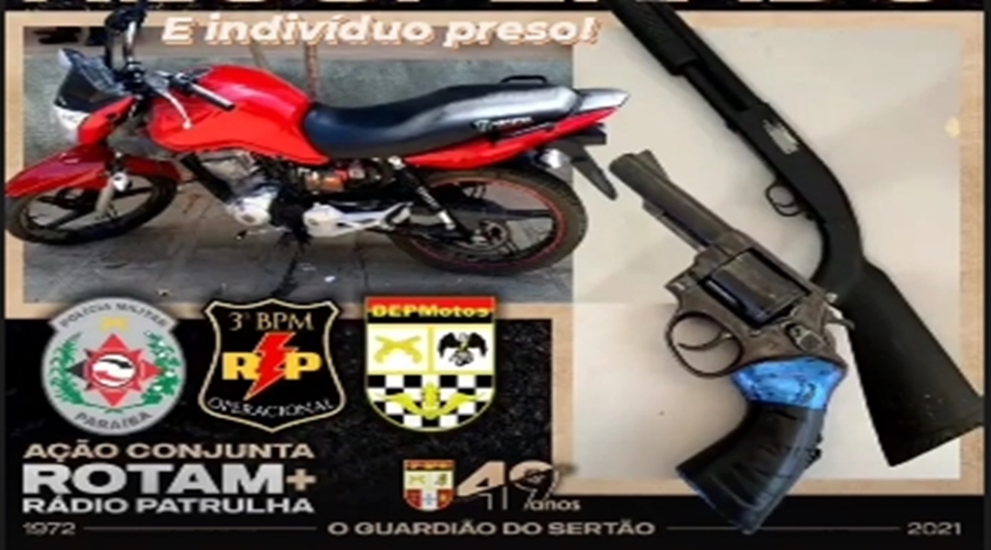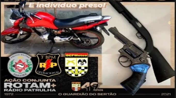 “Foram encontrados um revólver calibre 38 com a numeração raspada e quatro munições intactas e um simulacro tipo escopeta calibre 12. Tudo isso foi apreendido e será apresentado ao delegado de roubos e furtos e passará a ser investigado também por outros crimes que ele cometeu. É um jovem que já é conhecido na polícia, já cumpriu pena por homicídio, e vem praticando alguns crimes aqui na cidade de Patos”, finalizou Marcelo.