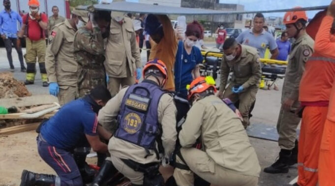 O trabalhador foi retirado de um buraco que tem cerca de 2,5 metros de profundidade.