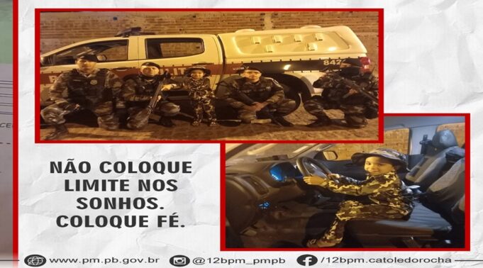 Na noite desta última terça-feira, 26/10, policiais militares do 12º Batalhão realizaram sonho de criança de 5 anos, no Sítio São Francisco, zona R´rural de Catolé do Rocha.