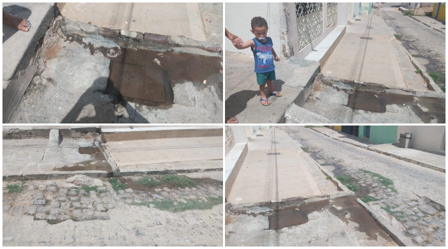 Pedro Jorge, que reside na casa de número 164, informou que o afundamento do calçamento por veículos pesados causou o estouramento da galeria. A água suja está prejudicando a residência do jovem, pois está invadindo a calçada e escoando para outras casas. “Tenho dois sobrinhos que moram comigo e estão sendo prejudicados. Nessa rua existem muitas crianças e idosos que são afetados pelos prejuízos gerados por essa galeria estourada”, disse.