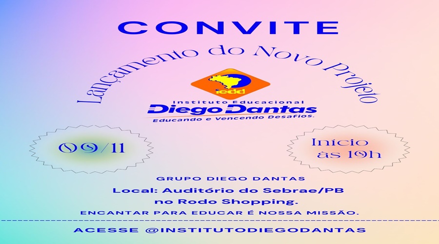 Em decorrência desse movimento, o instituto irá apresentar o lançamento do projeto nesta terça-feira, dia 9 de outubro, às 19h, no auditório do Sebrae-PB, localizado no Rodoshopping, em Patos.
