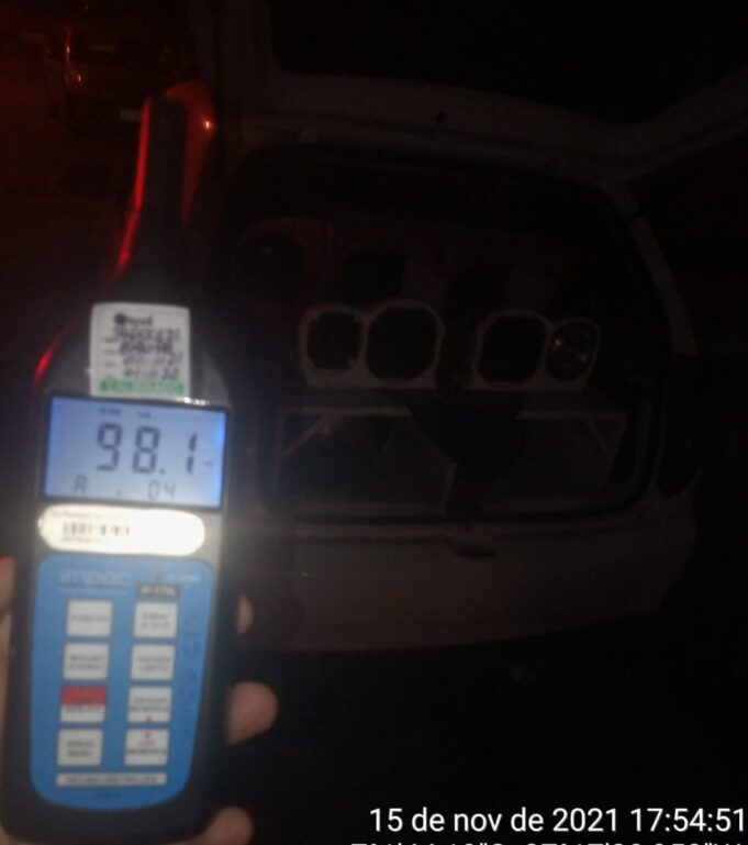 Durante rondas ostensivas no município supracitado, a guarnição ambiental, deparou-se com um som automotivo que emitia bastante ruído. De pronto, a equipe realizou a aferição com o decibelímetro, constatando que, de fato, o nível de decibéis estava acima do permitido.