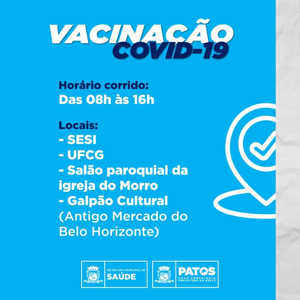 A ampliação para o público de 60 anos ou mais que precisa tomar a dose de reforço, a continuidade dos trabalhadores da saúde das redes municipal e estadual, bem como da segunda dose para pessoas que estão no prazo, se dá em virtude da chegada da 64ª pauta, com mais de 4 mil doses destinadas para a cidade de Patos.
