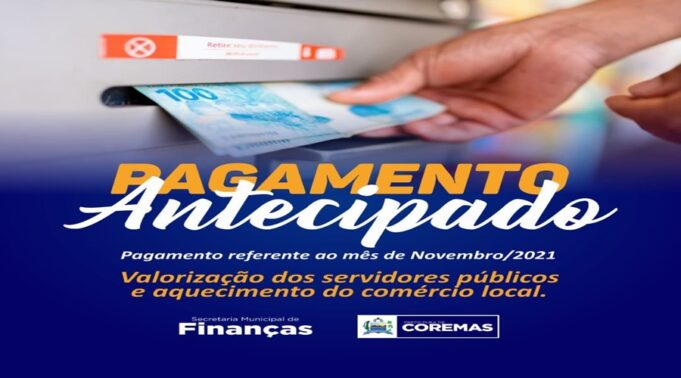 A Prefeitura de Coremas, no Vale do Piancó, sob o comando do prefeito Irani Alexandrino, realiza nesta quarta-feira, 24/11, mais um pagamento antecipado aos servidores públicos do município. Já é o sétimo mês seguido que a gestão vem cumprindo a determinação do prefeito de pagar, não apenas dentro do mês trabalhado, mas sempre que possível, de forma antecipada. A gestão também realizou antecipadamente o pagamento das duas parcelas do décimo terceiro salário.