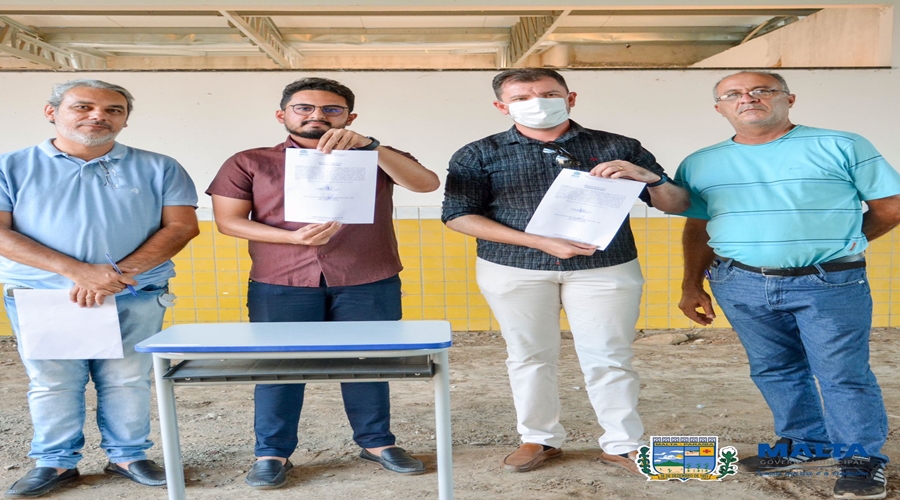 Estiveram presentes no momento da assinatura o prefeito Igor Rosa; o secretário de Administração, Diafrânio Fontes; o representante da Construtora Silva Leite, Gerson Leite e o engenheiro do Município, Júnior Lima.