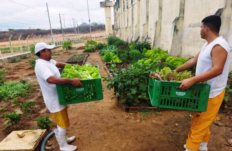 Três apenados são os responsáveis pelos cuidados e a colheita na horta comunitária. O número deve ser ampliado para cinco, pois a produção vem sendo ampliada e melhorada. A cada três dias trabalhados, o apenado tem a diminuição de um dia na sua pena. A horta é um dos projetos que buscam a ressocialização e gera ocupação por parte da população carcerária.