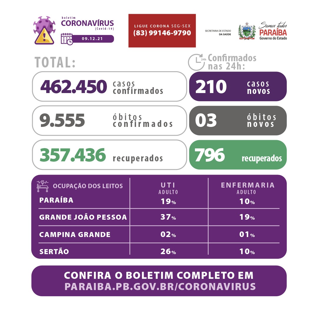 Os dados epidemiológicos com informações sobre todos os municípios e ocupação de leitos estão disponíveis em: www.paraiba.pb.gov.br/coronavirus.