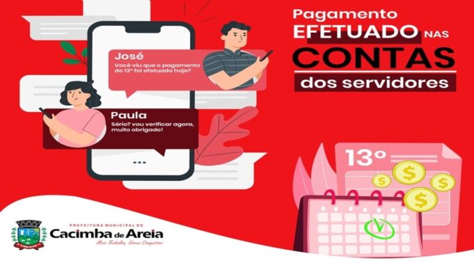 Os servidores efetivos de Cacimba de Areia, na Região Metropolitana de Patos, amanheceram com uma boa surpresa nas suas contas. A prefeitura municipal realizou nesta sexta-feira (10), o pagamento do 13º salário dos servidores.