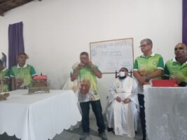 O padre Sebastião Gonçalves e Madalena. que acompanham o trabalho dos voluntários. expressaram a sua alegria em celebrar esse momento.