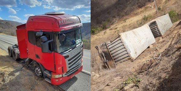 O Blog do Jordan Bezerra recebeu imagens e um vídeo do acidente mostrando as partes da carreta, que provavelmente virou em função de uma peça da parte que continha a carga ter se quebrado e virado na serra.