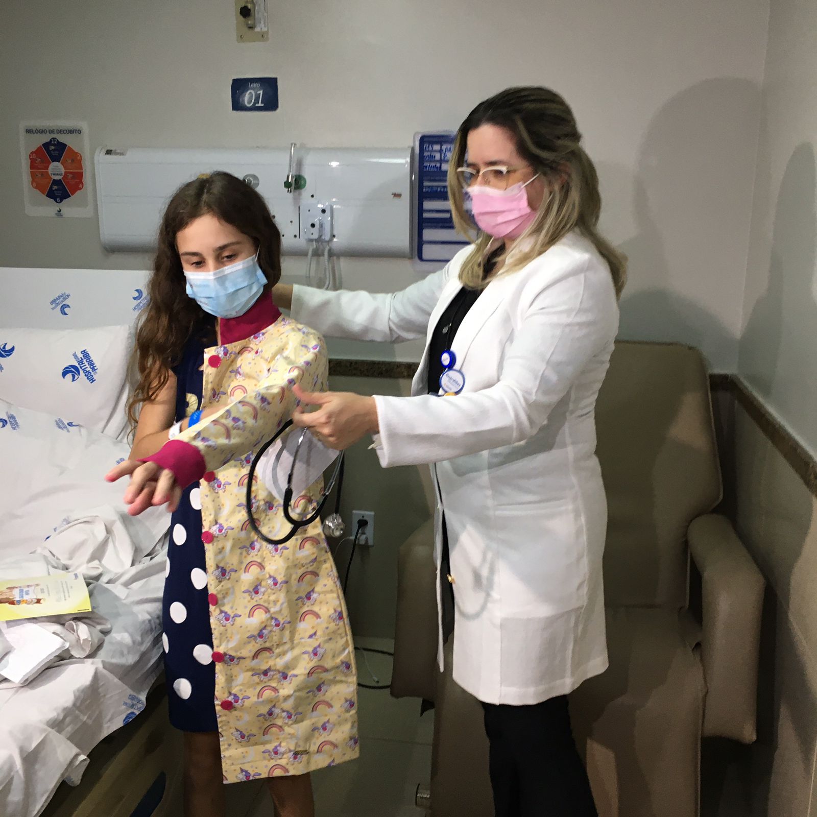 Vestida de jaleco e com estetoscópio, ela visitou cada setor da unidade hospitalar, conheceu os laboratórios, acompanhou ultrassonagrafia de gestantes e foi até o setor de neonatologia. A iniciativa fez parte do Projeto ‘Realize um Sonho’, que é desenvolvido pela unidade hospitalar como forma de humanização e de criar vínculos entre a equipe e os pacientes.