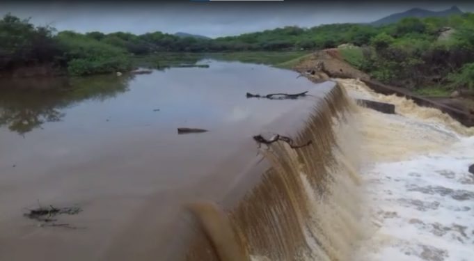 Depois da boa chuva de ontem (domingo, 02/01), em São José de Espinharas, na Região Metropolitana de Patos, a Barragem da Serra do Tronco amanheceu transbordando nesta segunda-feira, 03. Suas águas correm para o Rio Espinharas.