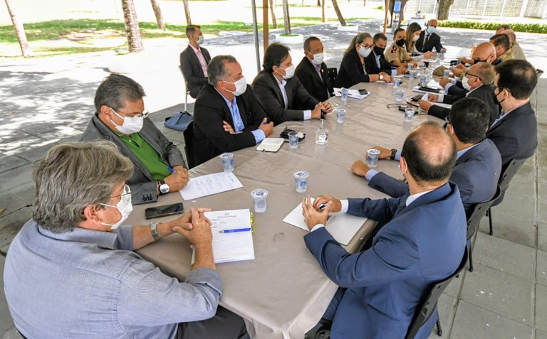 O governador João Azevêdo voltou a se reunir, nesta quinta-feira (6), na Granja Santana, em João Pessoa, com representantes da Polícia Militar e Corpo de Bombeiros Militar, ocasião em que anunciou 100% da incorporação da bolsa desempenho ao salário em 48 meses, acrescidos a 10% de reajuste salarial que será implantado de forma imediata.