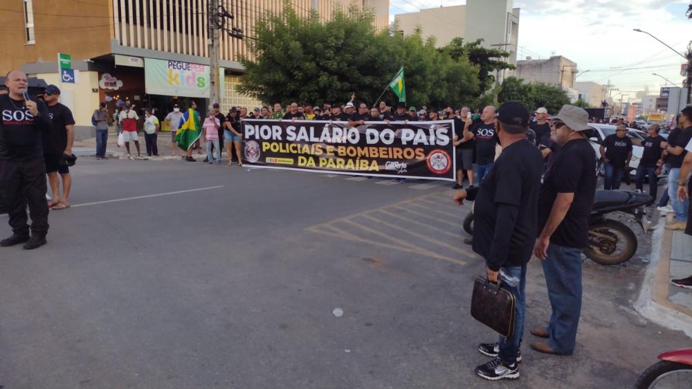Na tarde desta segunda-feira (10), uma grande manifestação foi realizada no município de Sousa, no Alto Sertão, por parte de policiais militares, bombeiros militares e sociedade civil, reivindicando direitos para as categorias que foram retirados pelo Governo do Estado da Paraíba.