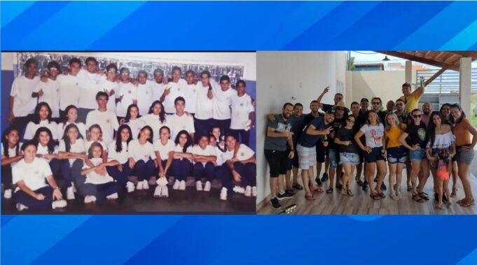 A reunião entre os ex-alunos aconteceu em uma área de lazer, em Patos, e reuniu quase 100% da turma, já que alguns moram em outras cidades e não conseguiram participar presencialmente.