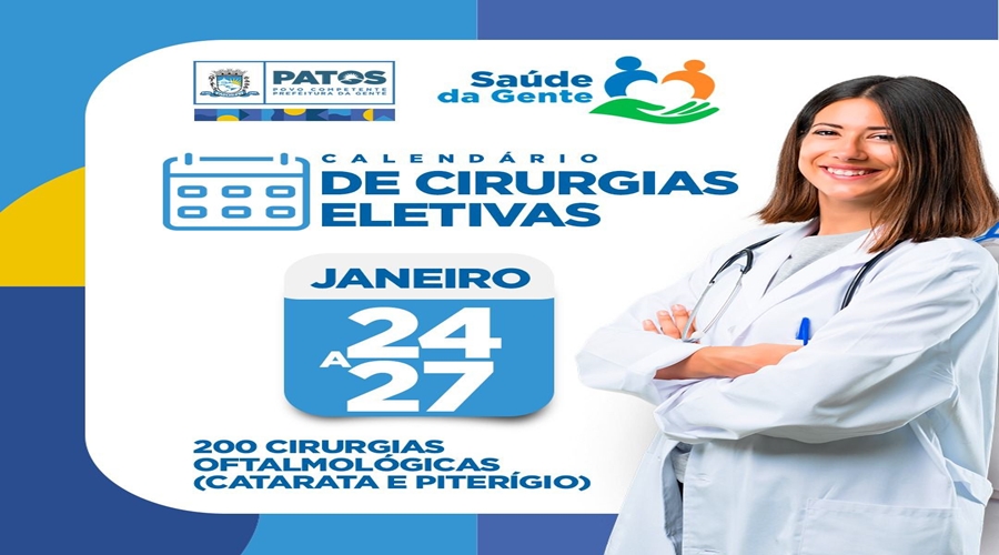 A Prefeitura de Patos por meio da Secretaria Municipal de Saúde lança o calendário de continuidade das cirurgias eletivas, realizadas com recurso próprio e primeira vez na história do município.