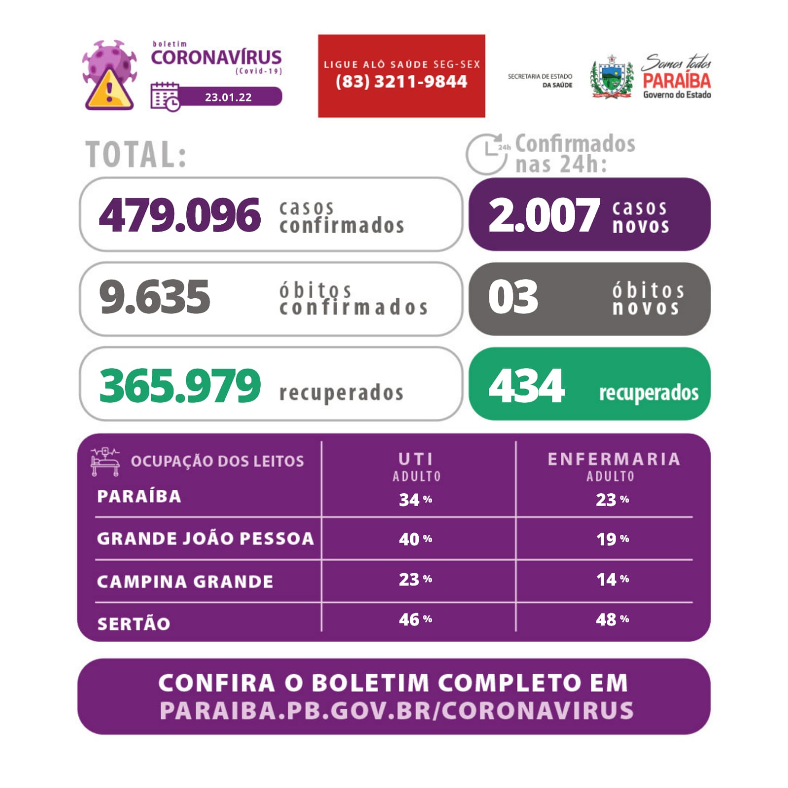 Os dados epidemiológicos com informações sobre todos os municípios e ocupação de leitos estão disponíveis em: www.paraiba.pb.gov.br/coronavirus.