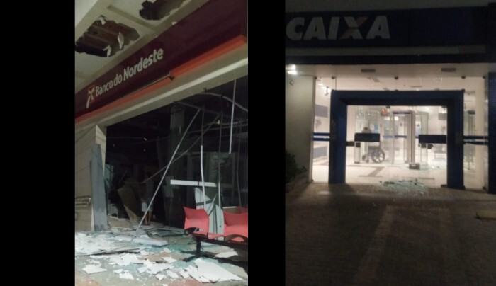 Após render moradores, os bandidos usaram explosivos e detonaram a agência do Bando do Nordeste e da Caixa Econômica da cidade. O estabelecimento fica a poucos metros da base do Serviço de Atendimento Móvel de Urgência (SAMU).