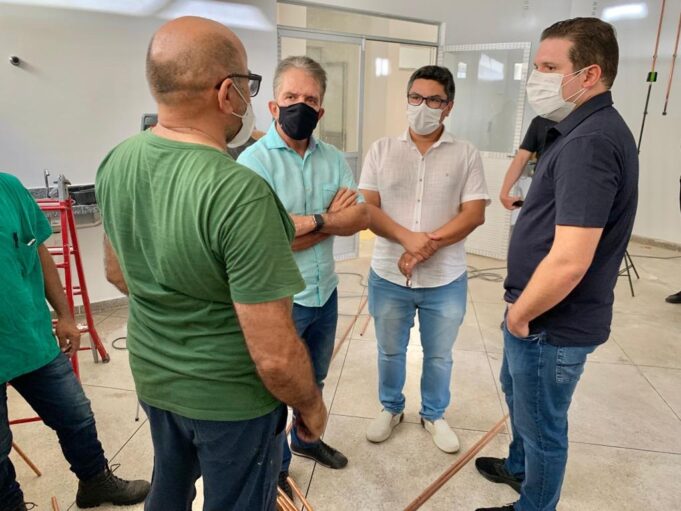 Durante sua vistoria, Nabor identificou que a tubulação de oxigênio já começou a ser instalada, que o gerador já foi entregue, e que toda a parte de energia elétrica está bem adiantada.