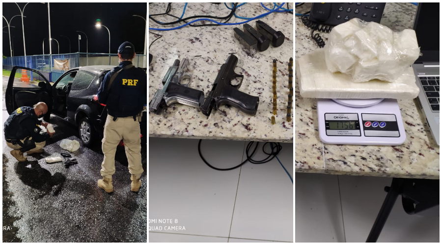 A Polícia Rodoviária Federal (PRF) apreendeu 1,756kg de cocaína, 01 pistola 9mm (fabricação israelita) e outra .40 Taurus (fabricação brasileira), na noite desta sexta-feira (27), na BR-230, em São Mamede, na Região Metropolitana de Patos.