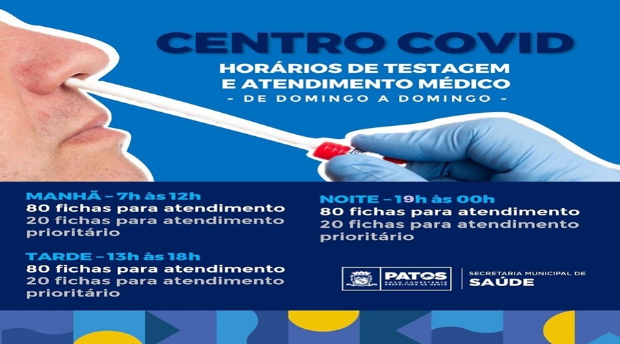 O Centro de Covid está com atendimento ampliado nos turnos manhã, tarde e noite, com o objetivo de dar mais assistência aos pacientes que procuram diariamente por testagem e atendimento médico. As fichas são limitadas e distribuídas por ordem de chegada. Para melhor informar sobre isso, disponibilizamos os horários de atendimento e a quantidade de fichas que são distribuídas por cada turno. Observe mais detalhes no post acima.