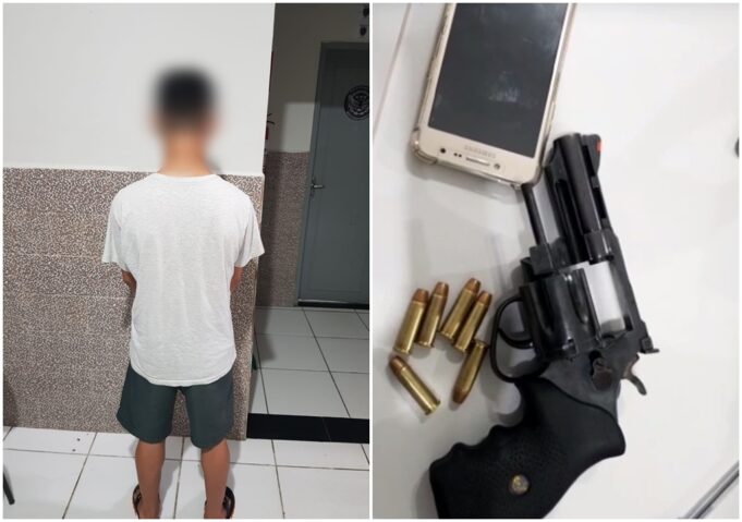 Além de drogas, e outras provas, foi apreendido um revólver com um dos alvos.