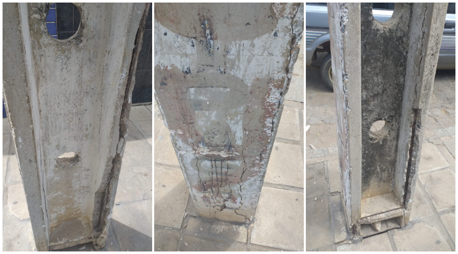 Moradores da Rua do Prado, em frente à antiga Madeireira Medeiros, no Bairro da Maternidade, zona oeste de Patos, estão preocupados com um poste que está bastante danificado no local, com rachaduras e corrosões.