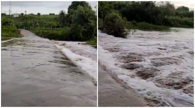 Com as boas chuvas caídas na região, o Rio Aguiar, em Aguiar, amanheceu em cheia neste sábado, 26. Veja vídeo:
