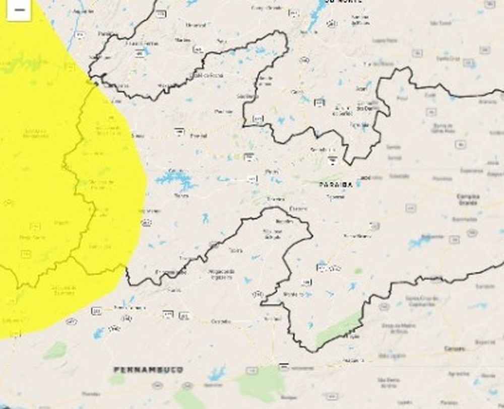 O Instituto Nacional de Meteorologia (Inmet) emitiu, nesta terça-feira (1°), um alerta amarelo de perigo potencial de chuvas intensas para 31 municípios do Sertão da Paraíba. O aviso vale até as 10h10 da quarta-feira (2).