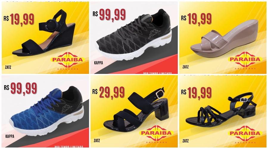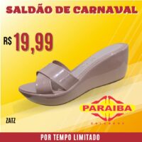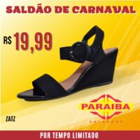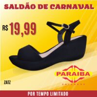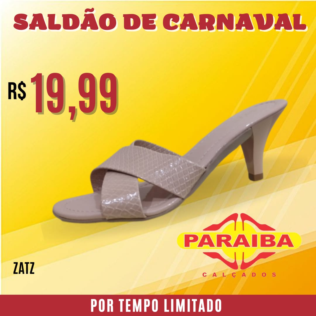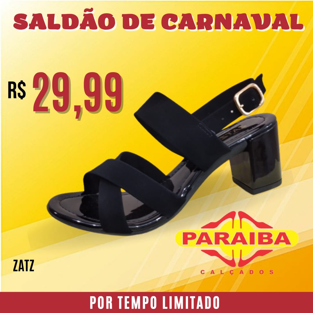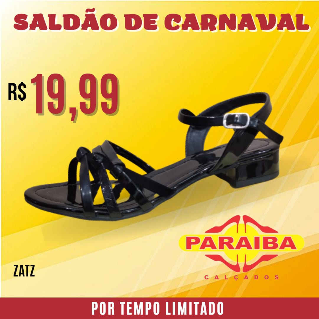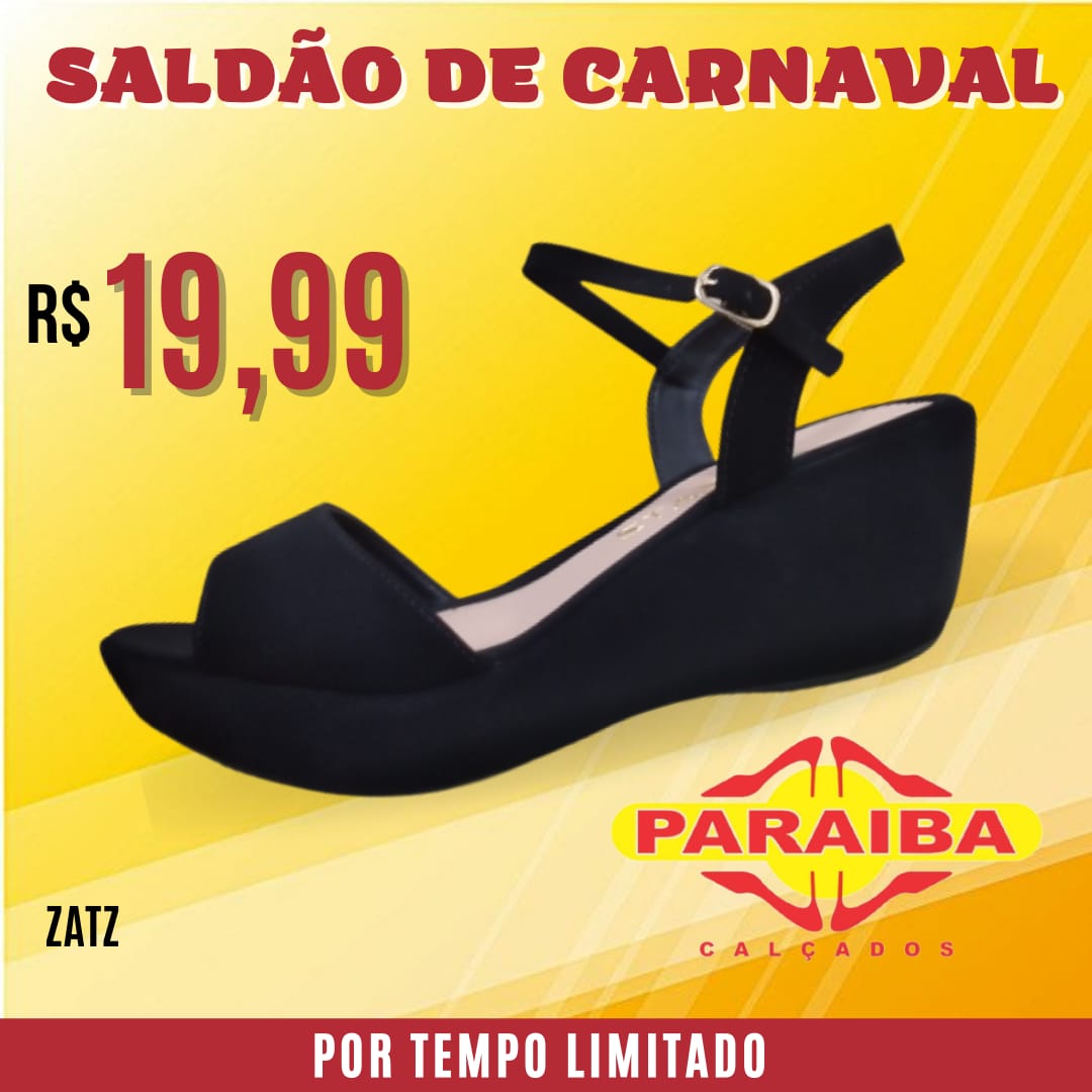 A Paraíba Calçados, na Rua Pedro Firmino, no centro de Patos, está com o Saldão de Carnaval. Venha conferir as melhores promoções e liquidação de calçados feminino, masculinos e infantis a partir de R$ 10,99 e aproveite super prazo em até 7x no crediário com a primeira para 75 dias ou se preferir no cartões de crédito até 12x (Mastercard, Visa, Hipercard e Elo.).