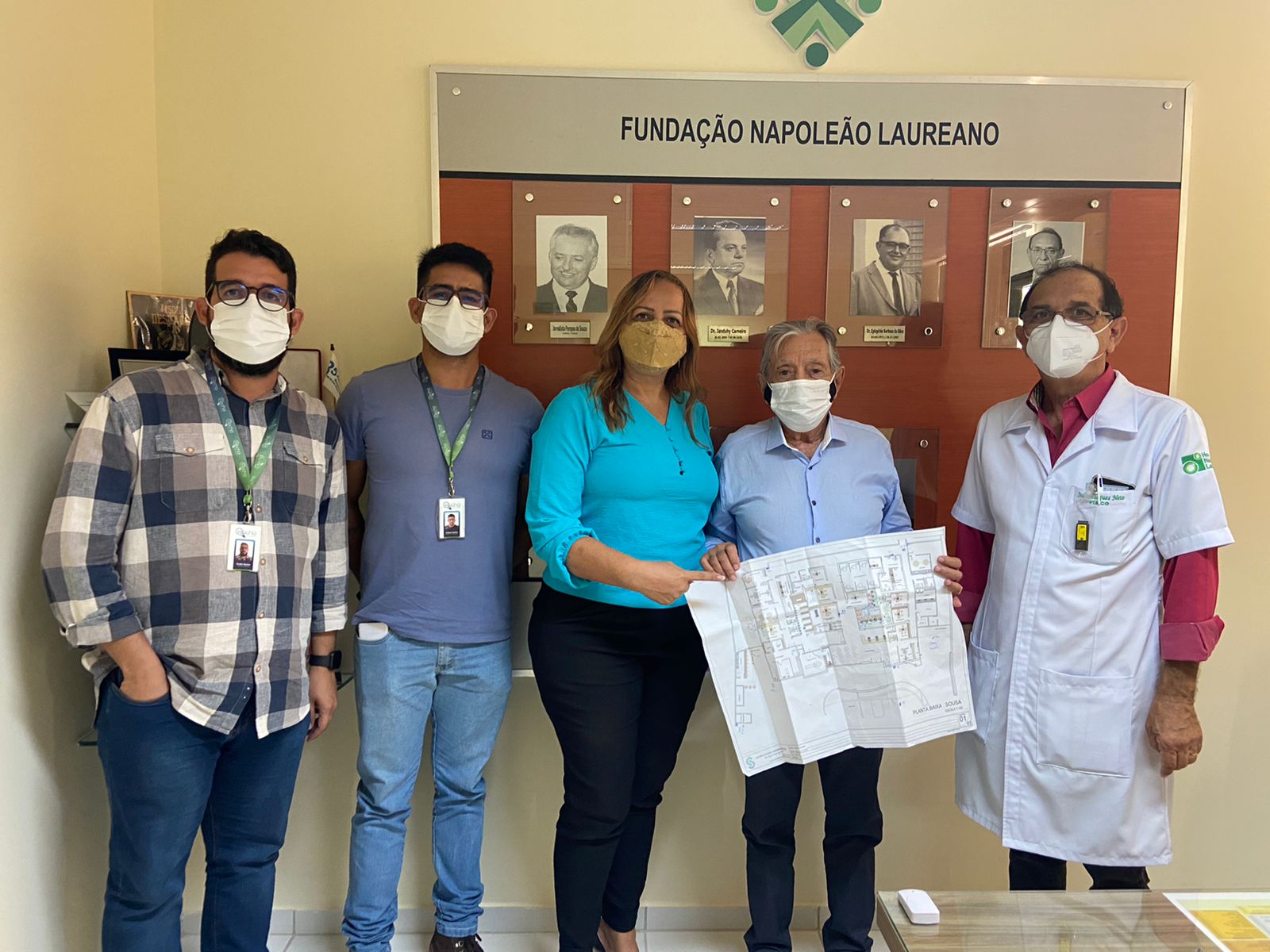 O prefeito Fábio Tyrone e a vereadora Lana da Casa de Sousa estiveram no Hospital em Napoleão Laureano, em João Pessoa, em datas distintas e na ocasião receberam das mãos do diretor da Fundação, Dr. Carneiro Arnaud, o projeto arquitetônico da segunda unidade do Hospital do Napoleão Laureano, que será instado em Sousa.