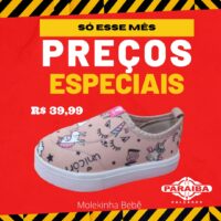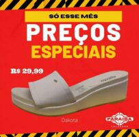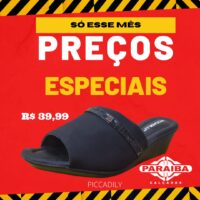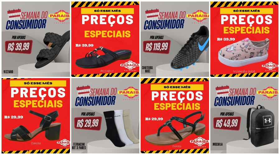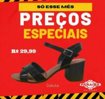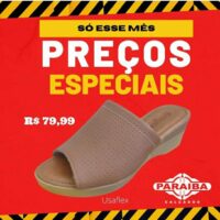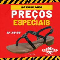 A Paraíba Calçados, na Rua Pedro Firmino, no centro de Patos, está com excelentes preços na Semana do Consumidor. Venha conferir as melhores promoções e liquidação de calçados, bolsas, mochilas e outros itens e aproveite super prazo em até 10x no crediário ou se preferir no cartões de crédito até 12x (Mastercard, Visa, Hipercard e Elo).