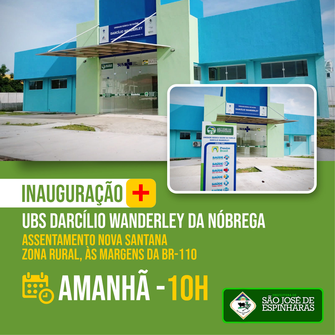 A partir das 10h desta terça-feira, 15/03, a Prefeitura de São José de Espinharas, na Região Metropolitana de Patos, vai inaugurar a Unidade Básica de Saúde Darcílio Wanderley da Nóbrega, no Assentamento Nova Santana, às margens da BR-110.