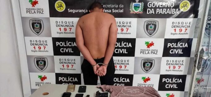 Uma equipe da Policia Civil, através do Núcleo de Roubos e Furtos de Patos, prendeu em flagrante na manhã desta quarta-feira, dia 16 de março, o jovem de iniciais J.C.P.D., de 22 anos, por prática de vários roubos na cidade de Patos, entre eles, o da Panificadora Eldorado ocorrido na tarde desta terça-feira (15).